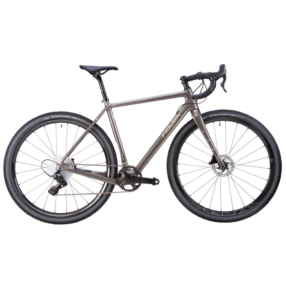 Carbon fibre Gravel Bicycle with a carbon thru-axle disc fork with wide tyre clearances. Equipped with a Campagnolo EKAR 1 x 13 speed groupset, Campagnolo Levante Carbon Gravel wheels and Deda Elementi seatpost, stem and handlebars.